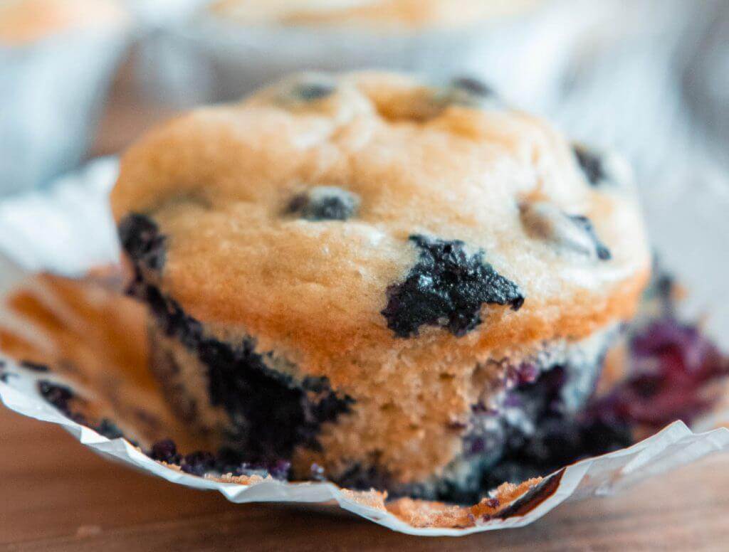 - Fill the muffin tins about 2/3 to 3/4 full. Add a couple blueberries to the top if you desire. Another option is to add a spoon full of cream cheese to the top of the muffin batter before baking. This is the way my kids like them.