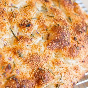 - When it is done, take the focaccia out of the oven, take it out of the pan and let it cool on a wire rack. Do not let it sit in the pan, it will sweat and lose its crisp, which is an amazing part of the bread.