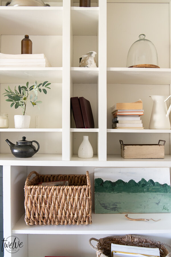 I really wanted some longer book shelves that I could add baskets and other items that were too large for some of the other upper shelves.