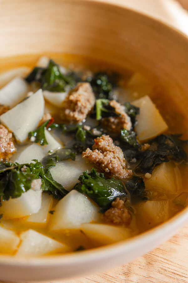 So lets talk about how to make this potato sausage and kale soup recipe: