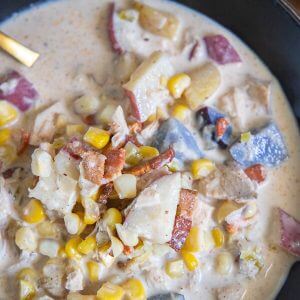 This easy chicken corn chowder recipe is a family favorite and we love to make it on a cool night when we need a hearty and comforting meal.