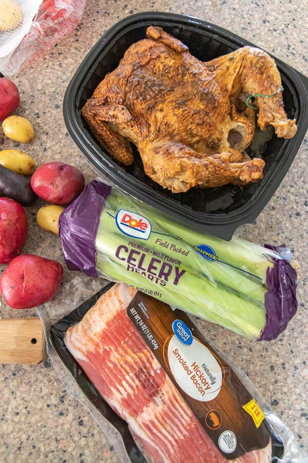 I love using a Rotisserie chicken from Walmart, and YES you can get it on your grocery order! From what I can tell, they limit quantities so a full chicken might not be available, but they also sell a rotisserie chicken already pulled from the bone and packaged up for you. They come cooked and chilled, which is super convenient when you are planning to use it later in a recipe. I find it to be super tender chicken and it makes it so easy to whip up hearty soups like this.