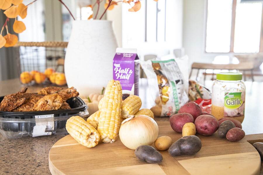 Now, lets talk about the items I needed to make this hearty chicken corn chowder. I needed: