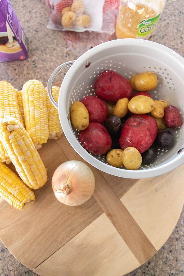 Lets prep all the ingredients. I started by washing my potatoes and corn.