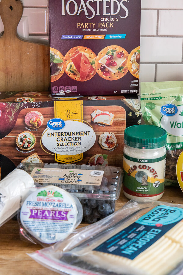This dinner party was made a lot easier by some of the products I was able to use from Walmart. I made a list of all the things I wanted to use on the board and then went shopping. This can be made even easier by ordering your groceries online and picking them up. This is how I always do my grocery shopping. It saves me tons of time and even money! I find I spend way more in the store haha. Here are some of the items I got for this dinner. The great thing is that we use these all on a daily basis so if it doesn’t get used for the dinner party, they will most definitely get eaten anyways.