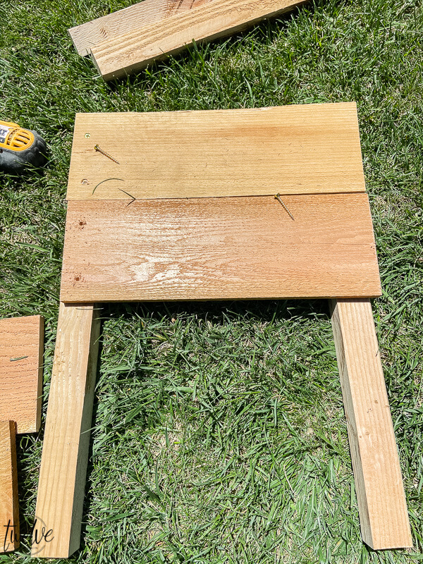 Make sure to pre drill your holes. Also make sure that the holes will line up over the 2 by 2 inch posts and not too far towards the end of the board. This will cause you to drill into the thinner cedar plank and can cause splitting and other issues.