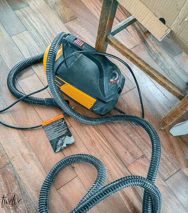 Once the fireplace was taped off, I vacuumed and cleaned the stone to make sure the paint would adhere well.