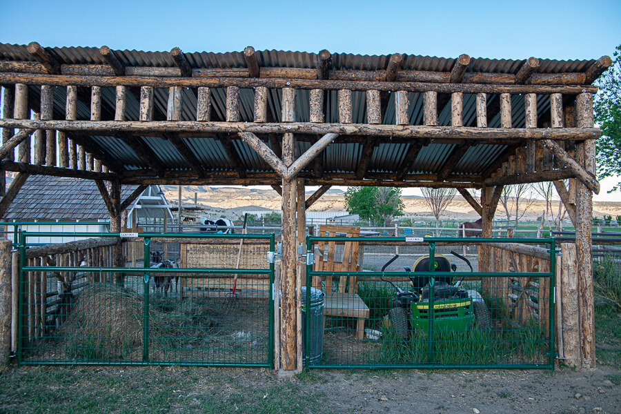 Maybe one day we will look into steel buildings as a place that we could keep our goats if we decide to expand as well as if we get a milk cow. If we decide to do more milking, it will make sense to do that. For right now, this area is perfect for what we use it for. I can trim on my goat hooves in here on the milk stand. I can feed them directly from the shelter and it’s just really works out well for us.