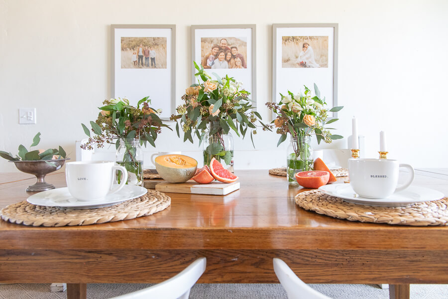 I had some grapefruits sitting in my fridge and I knew that the bright pink flesh would look perfect in this tablescape.