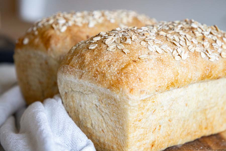 Get my soft honey oat sourdough sandwich bread recipe below!