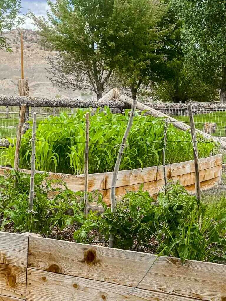 We have planted corn about 4 times in our raised bed, and while they grow beautifully, they seem to struggle to grow nice ears. Whether that is from the spacing, the raised bed, nutrients, or bee pollination, it just doesn’t thrive. So, we have decided not to grow it in our raised beds, unless we spread them out more and fill at least two raised beds with corn.