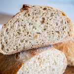Bake the dough for 35 minutes. Check around 30 minutes and see if it is done. Tap it, it should feel hollow. You can take the top off of the pan and let it bake if the top is not golden brown. Cook with the top off for another 15-20 minutes.*If you make two smaller loaves your baking time will be less. Take it out of the oven when it is done and let it cool completely on a rack before cutting.