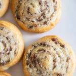 Spread the cream cheese and sausage mixture over the entire sheet of crescent dough. Once it is evenly spread, roll up the dough like you would for cinnamon rolls.