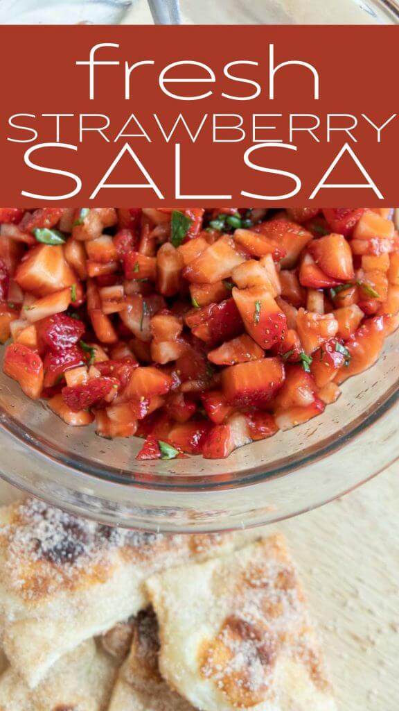I like to spread some cream cheese or goat cheese onto a chip or cinnamon sugar pita bread and then top with a spoon full of the strawberry salsa.